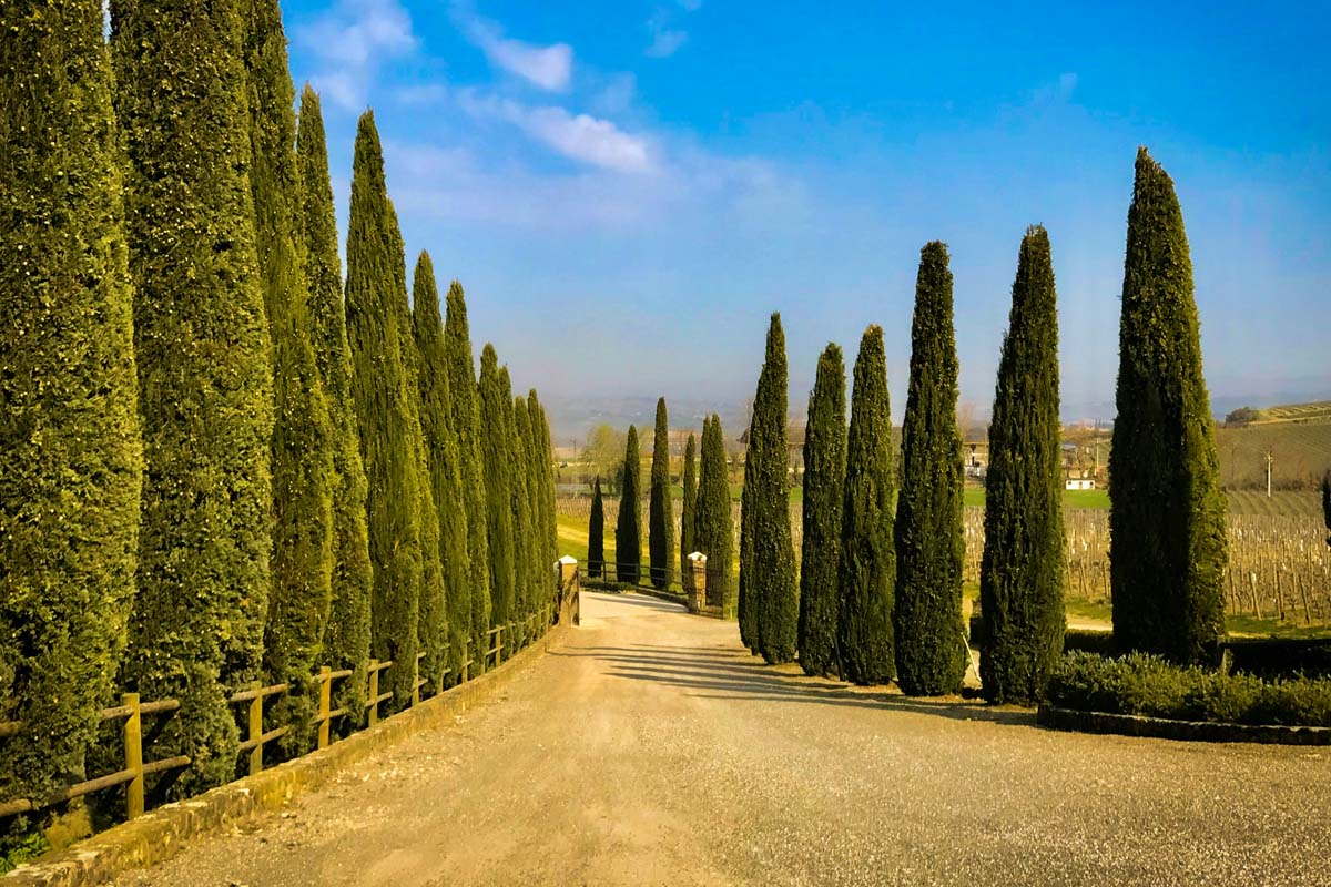 The Chianti region in Tuscany is a place where nature and history intertwine to create a landscape that is both breathtaking and timeless. Imagine driving through rolling hills covered with vineyards and olive groves, dotted with medieval castles and charming hilltop towns. The air is filled with the scent of cypress trees and the distant hum of cicadas, creating a serene and enchanting atmosphere. As you explore the winding country roads, you’ll come across picturesque villages like Greve in Chianti, Castellina in Chianti, and Radda in Chianti. Each village has its own unique charm, with narrow cobblestone streets, ancient stone buildings, and vibrant local markets. And more, imagine yourself sitting in front of this landscape sipping a glass of the iconic Chianti Classico wine, while you’re greeted with the rich aroma of red fruits, dried herbs, and a hint of balsamic. As you take your first sip, the flavors of espresso and tobacco dance on your palate, creating a symphony of taste that is both robust and elegant.